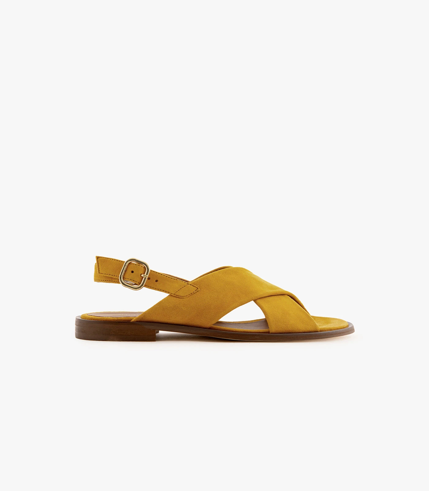 Avec sa teinte lumineuse, Axelle en cuir velours jaune est une sandale plate, confortable et tendance, parfaite pour dynamiser vos looks estivaux.
